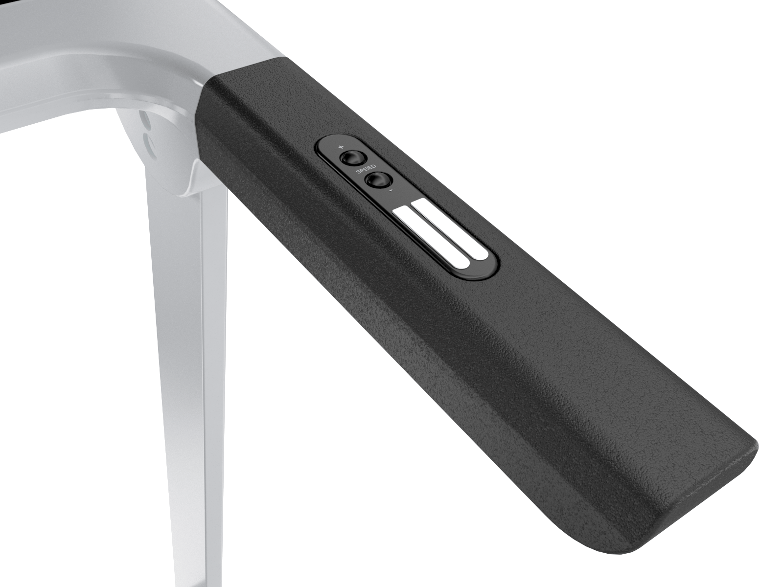 Дорожка обладает инновационной функцией “NO TOUCH CONTROL”, которая с помощью инфракрасного датчика позволяет пользователю бесконтактно изменять скорость во время тренировки, а так же установить нужный параметр целевой тренировки (расстояние, калории и время тренировки).