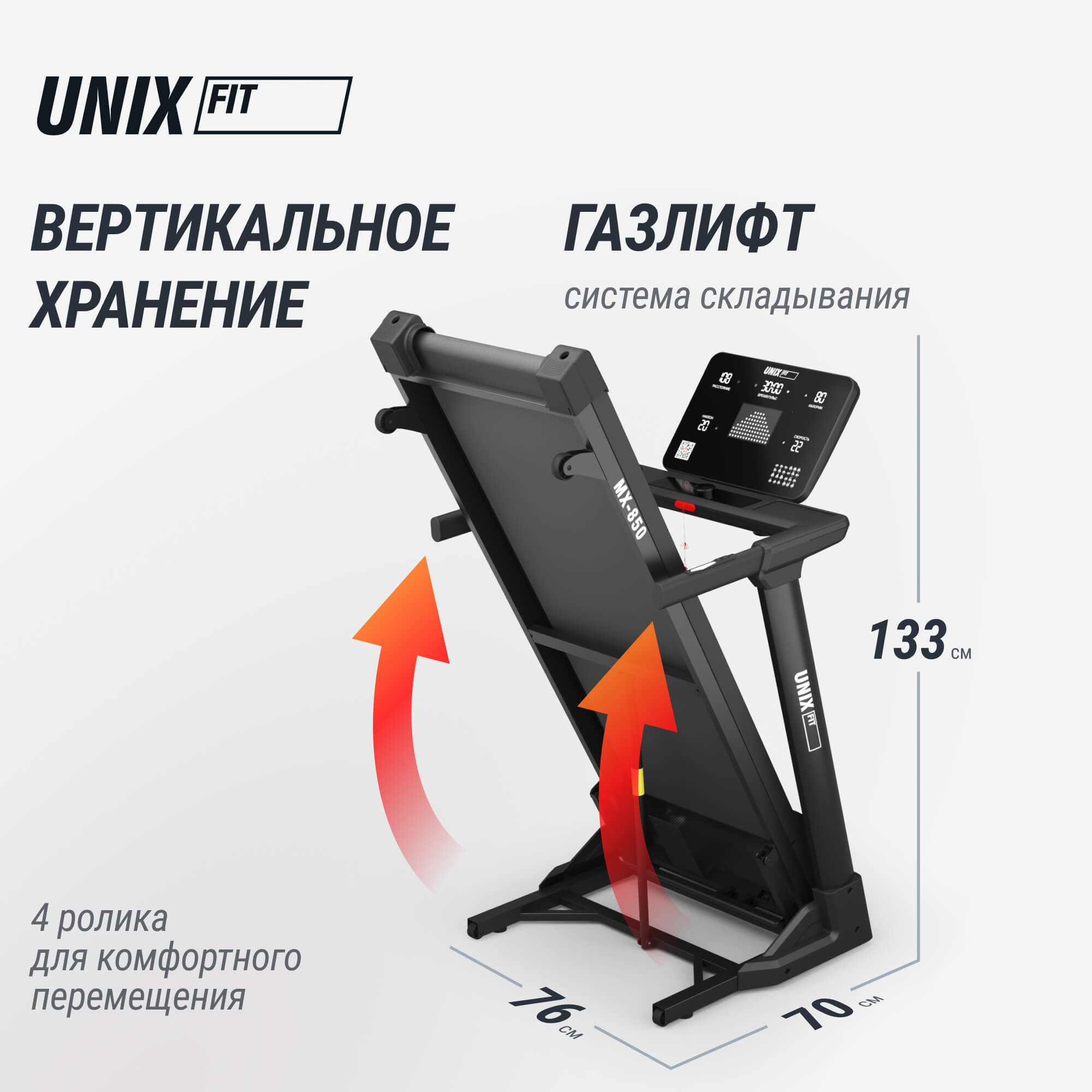 Этот тренажёр идеально сочетает производительность, удобство эксплуатации и инновационные технологии, делая каждую тренировку эффективной и комфортной. Спортивный кардио тренажер MX-850 имеет стильный дизайн и оптимальные размеры, позволяющие разместить её практически в любом помещении. Складная конструкция с оборудована системой складывания газлифт, что облегчает транспортировку и экономит пространство, а четыре транспортировочных колеса помогут легко перемещать дорожку внутри помещения