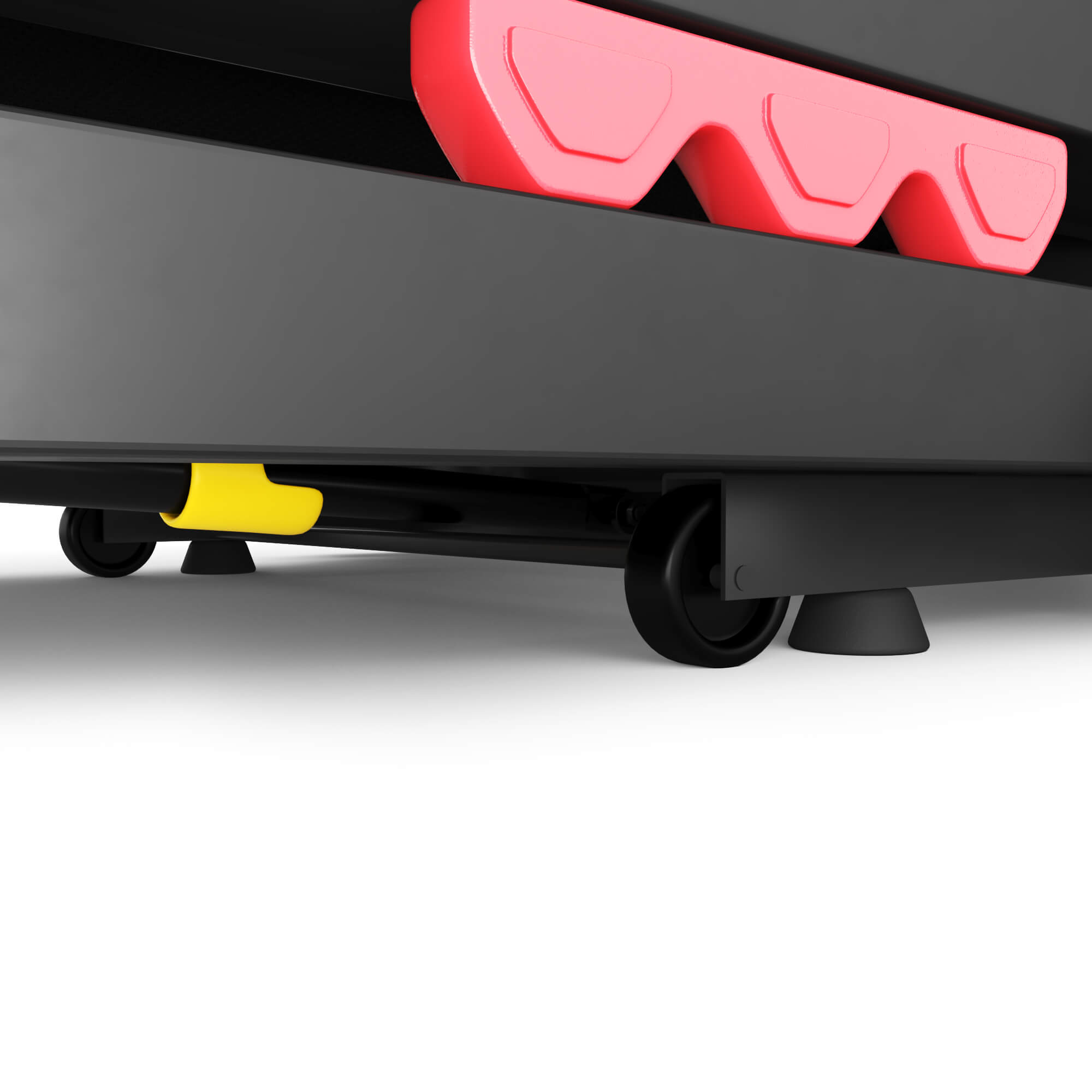 Амортизационная технология включает восемь резиновых демпферов и шесть воздухонаполненных амортизаторов типа Airbag, уменьшая воспринимаемое механическое давление на суставы до 95%. Складная конструкция облегчает транспортировку и экономит пространство помещения благодаря интегрированным колесам для удобства перемещения.