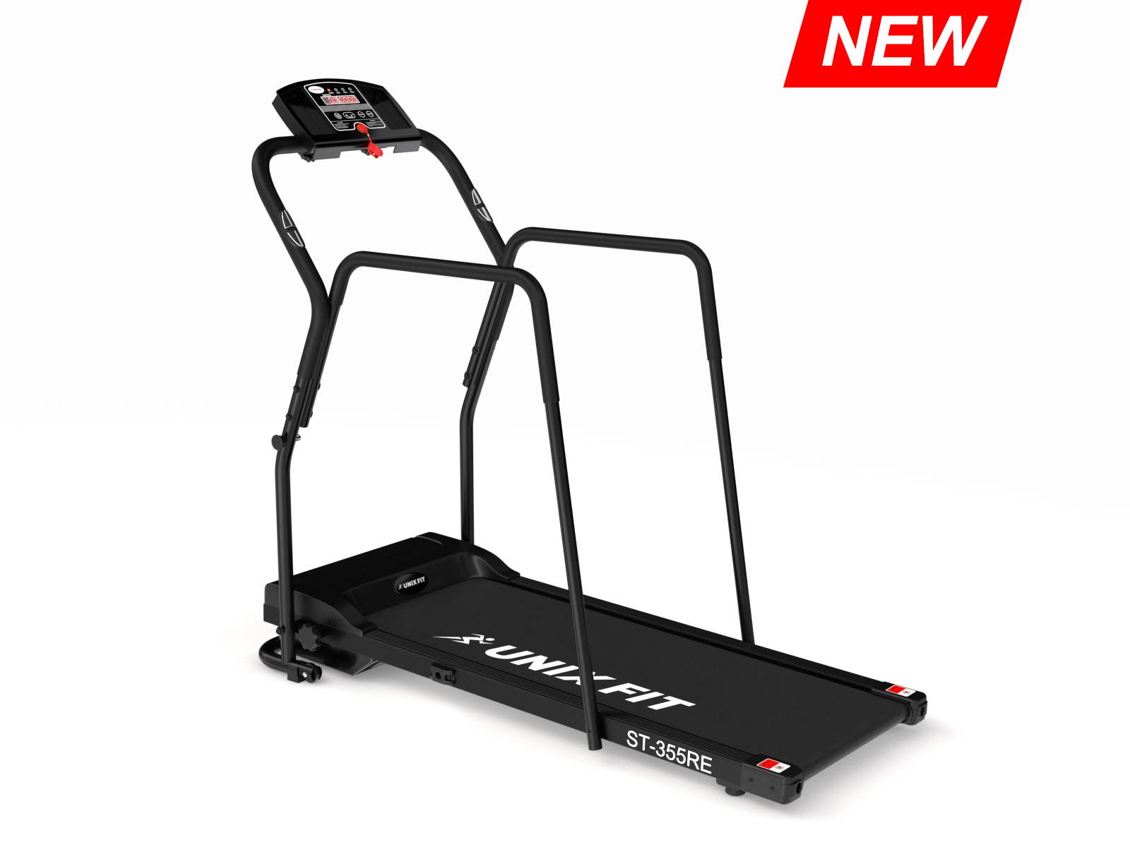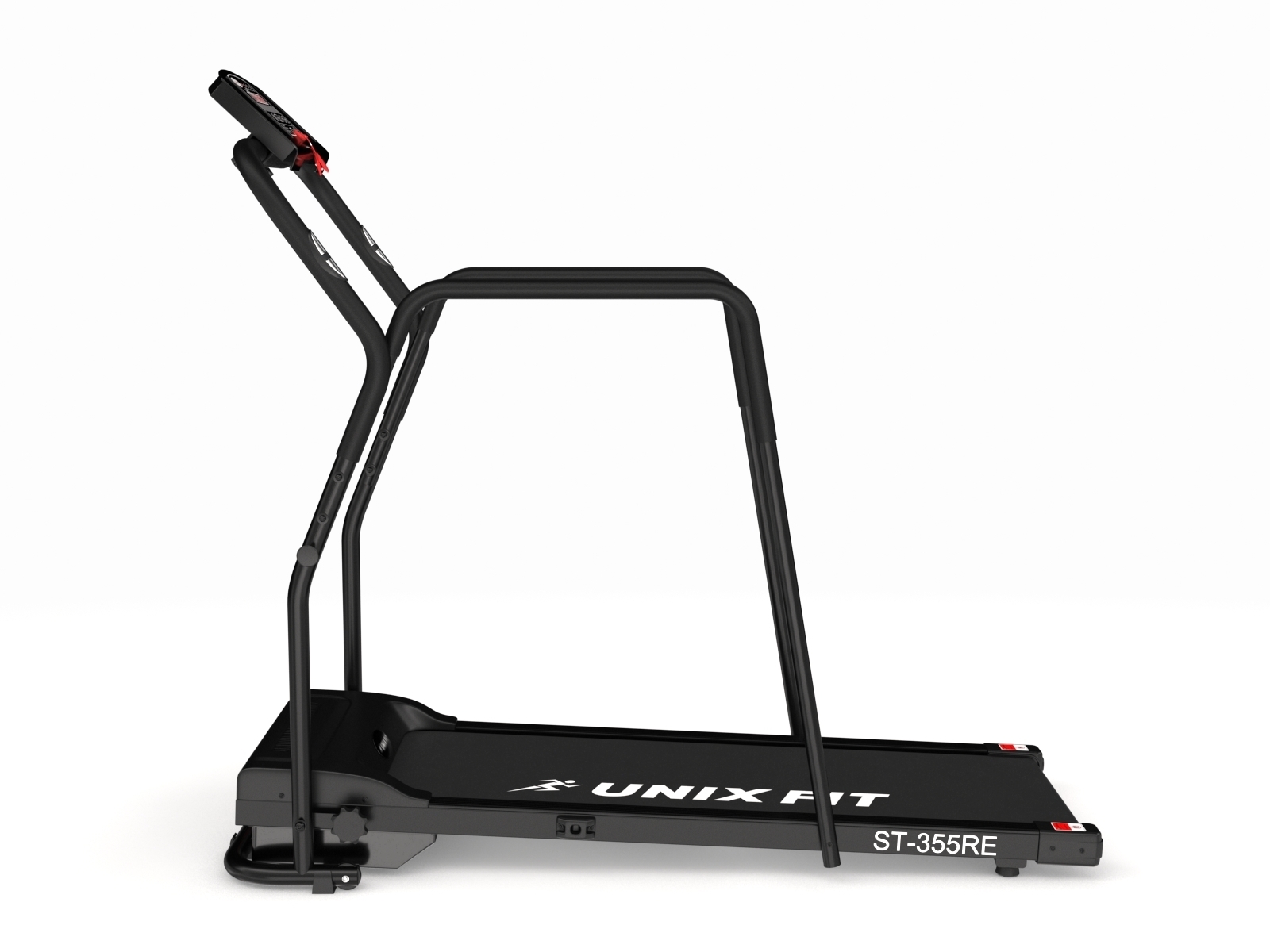 UNIXFIT™ ST-355RE отличается легкостью и компактностью. К отличительным особенностям следует отнести комфортную для ходьбы и бега ширину бегового полотна, прочную раму и встроенные в поручни датчики измерения пульса. Максимальная скорость 10 км/ч соответствует бегу в среднем и быстром темпе, что позволяет проводить полноценные тренировки пользователям с высоким уровнем физической подготовки.