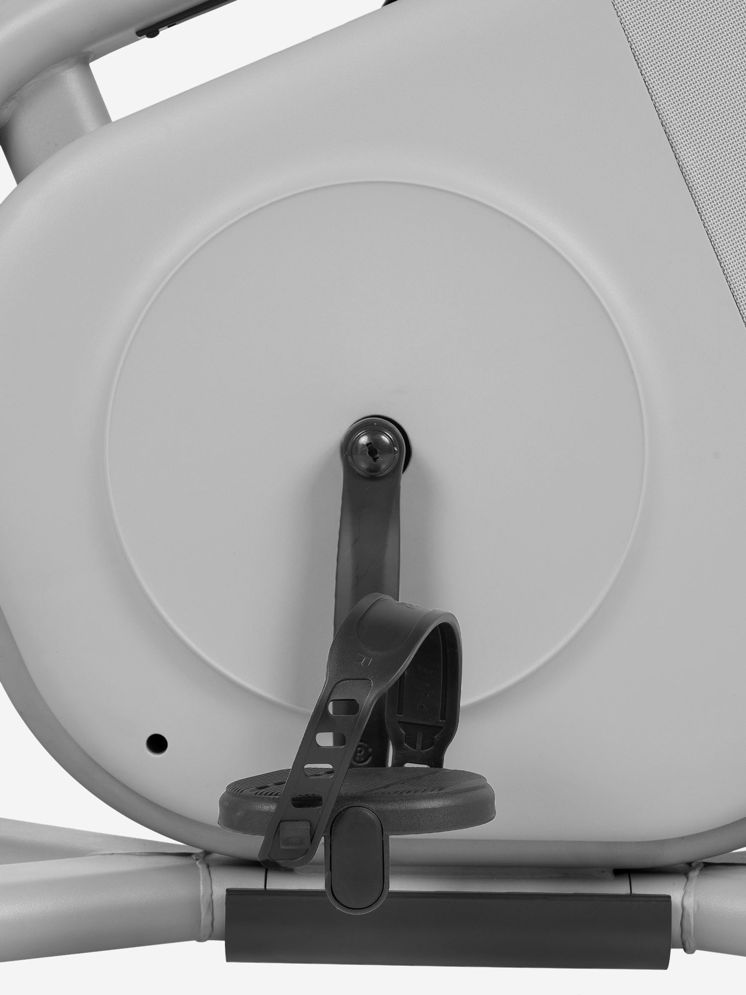Удобное сиденье с антискользящим покрытием регулируется как по вертикали, так и по горизонтали, так что вы без труда подберете для себя идеальное положение. Регулировка руля позволяет настроить его подходящее положение для максимального комфорта во время тренировок. Педали с прорезиненной поверхностью и ремешками надежно фиксируют ногу, гарантируя удобное и безопасное вращение. Благодаря маховику весом 7 кг вращение педалей становится стабильным и плавным, без рывков и вибрации. Предусмотрено беспроводное зарядное устройство и разъем USB-C для зарядки гаджетов, а также удобный держатель для бутылки со слайдер-системой: достать и поставить бутылку можно не прерывая тренировку. Цвет тренажера — светло-серый.