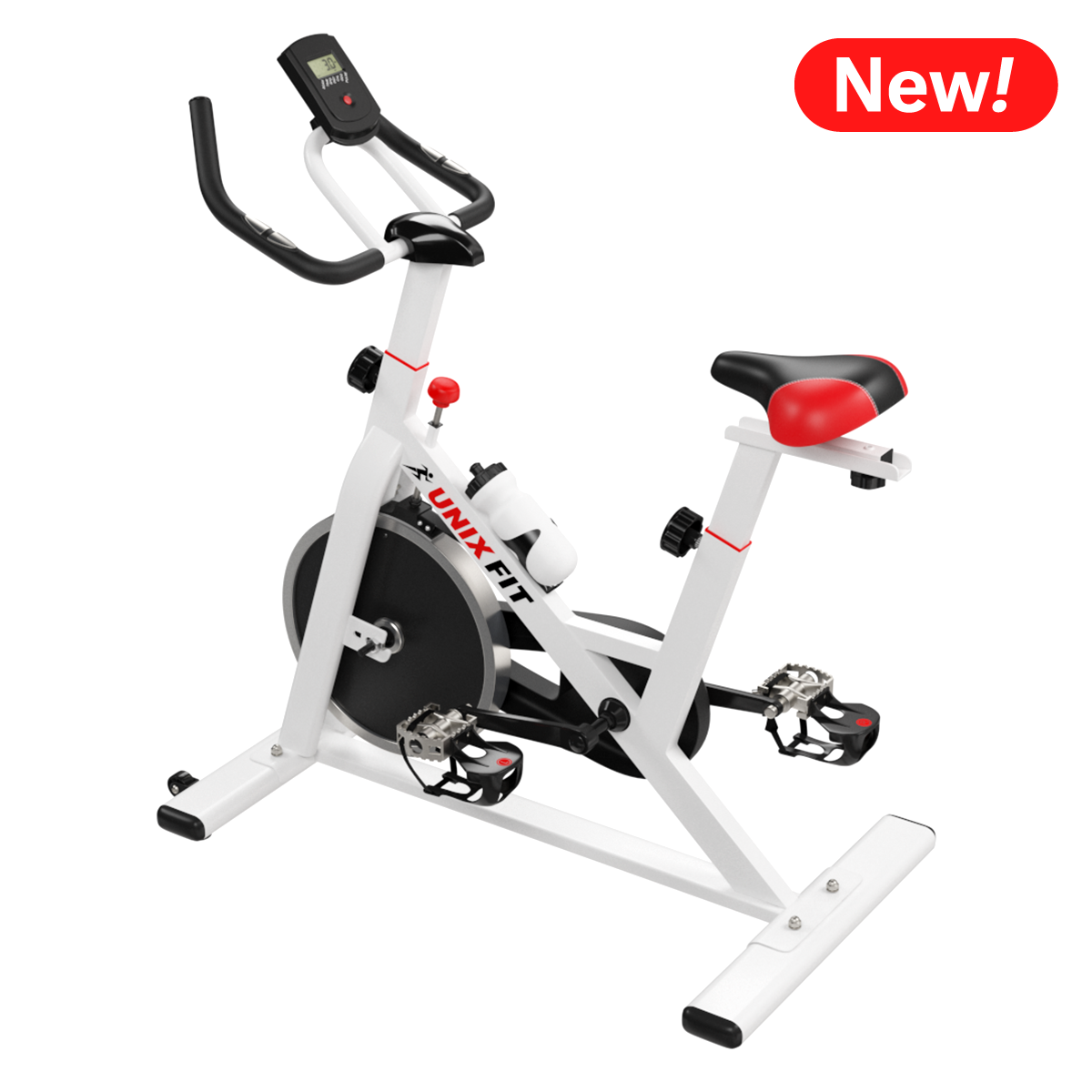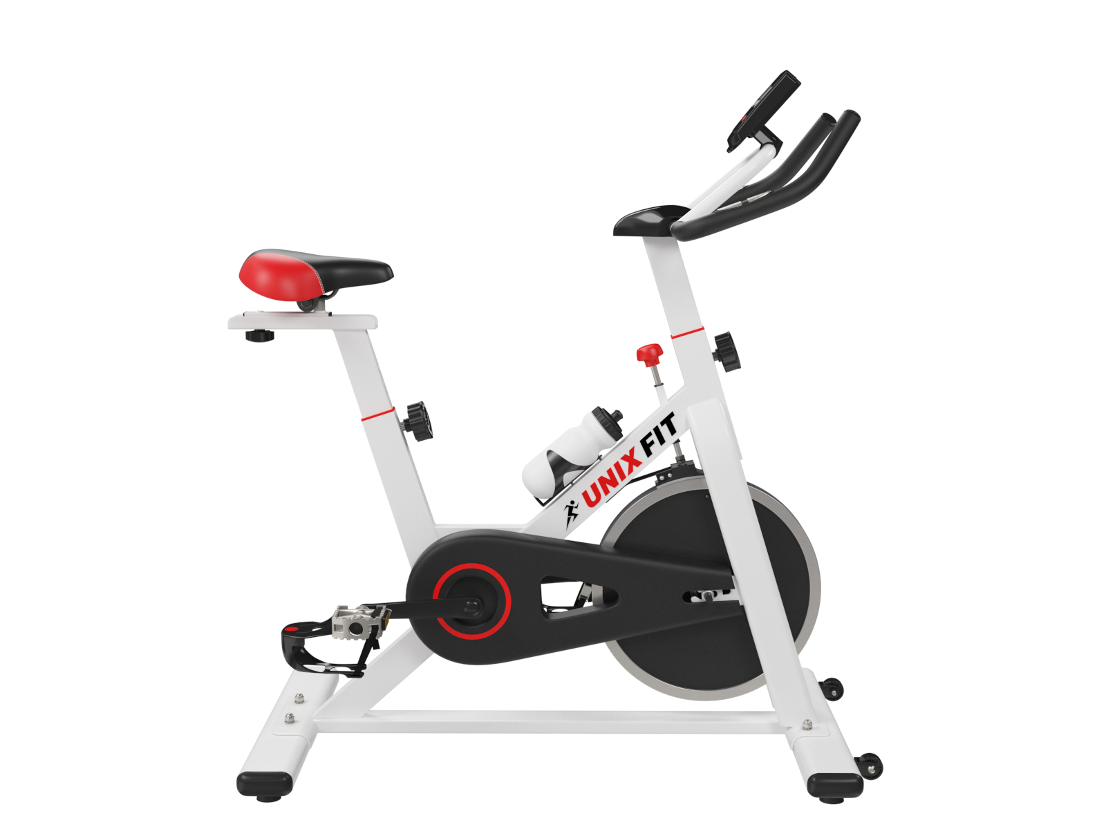 Эргономичное гелевое сиденье и руль имеют возможность регулироваться под пользователя: сиденье по горизонтали и вертикали, а руль по вертикали. Антискользящее покрытие на педалях, а также наличие на них ремешков-фиксаторов способствуют удобному расположению ноги во время тренировки. У спин-байка имеются специальные транспортировочные ролики, так что его перемещение по квартире не вызовет затруднений.