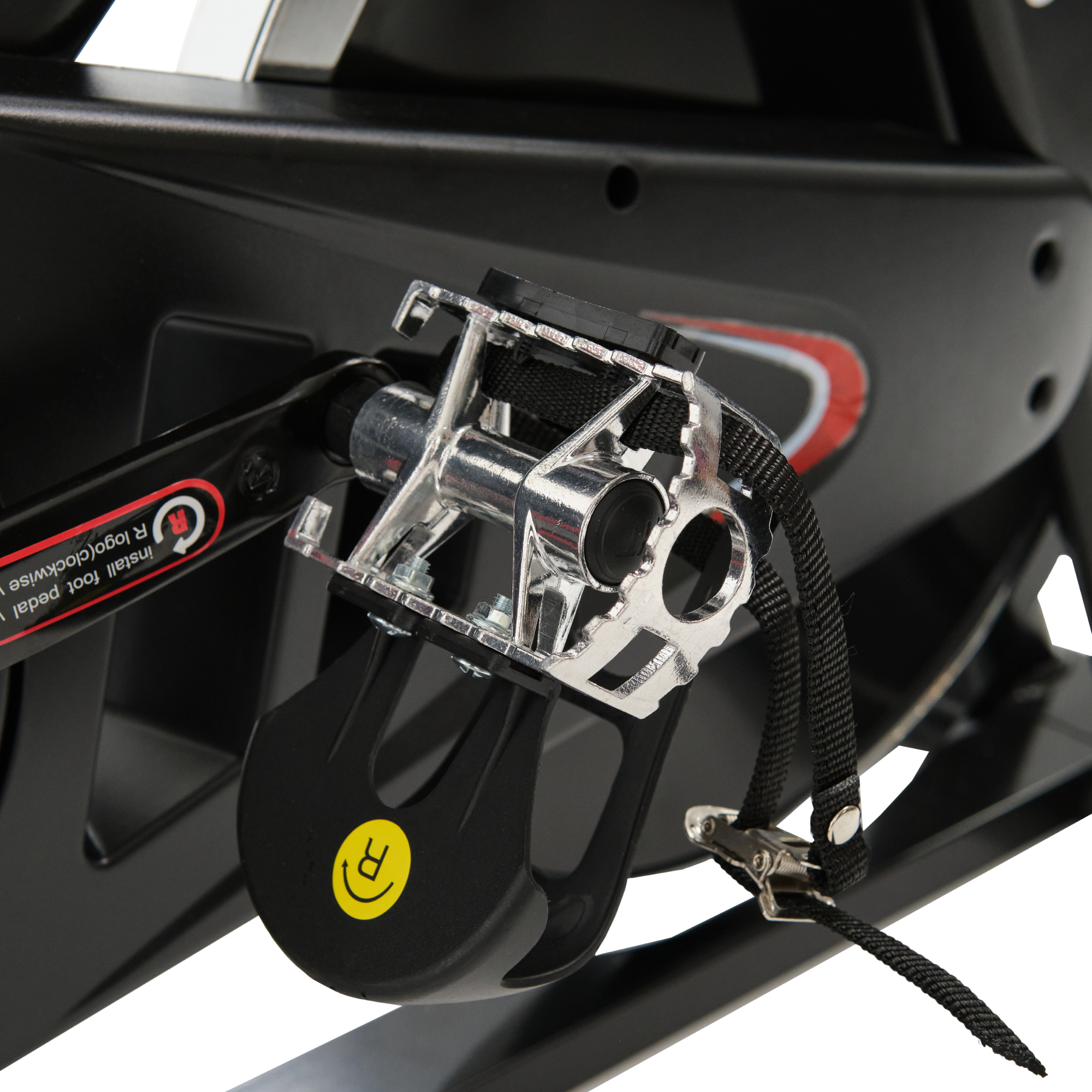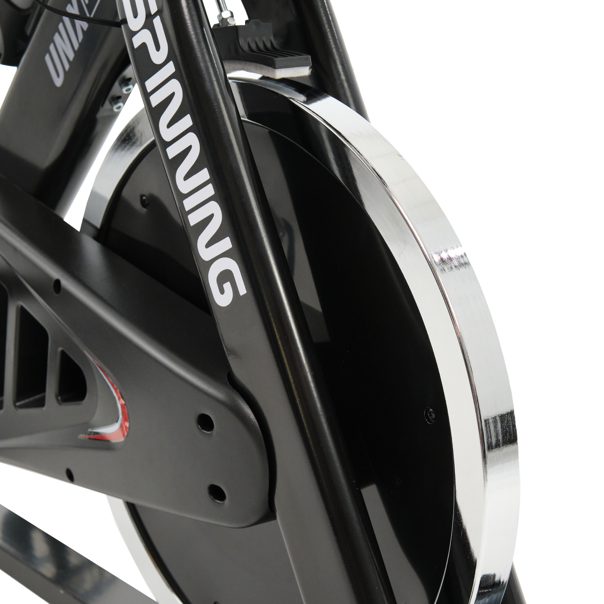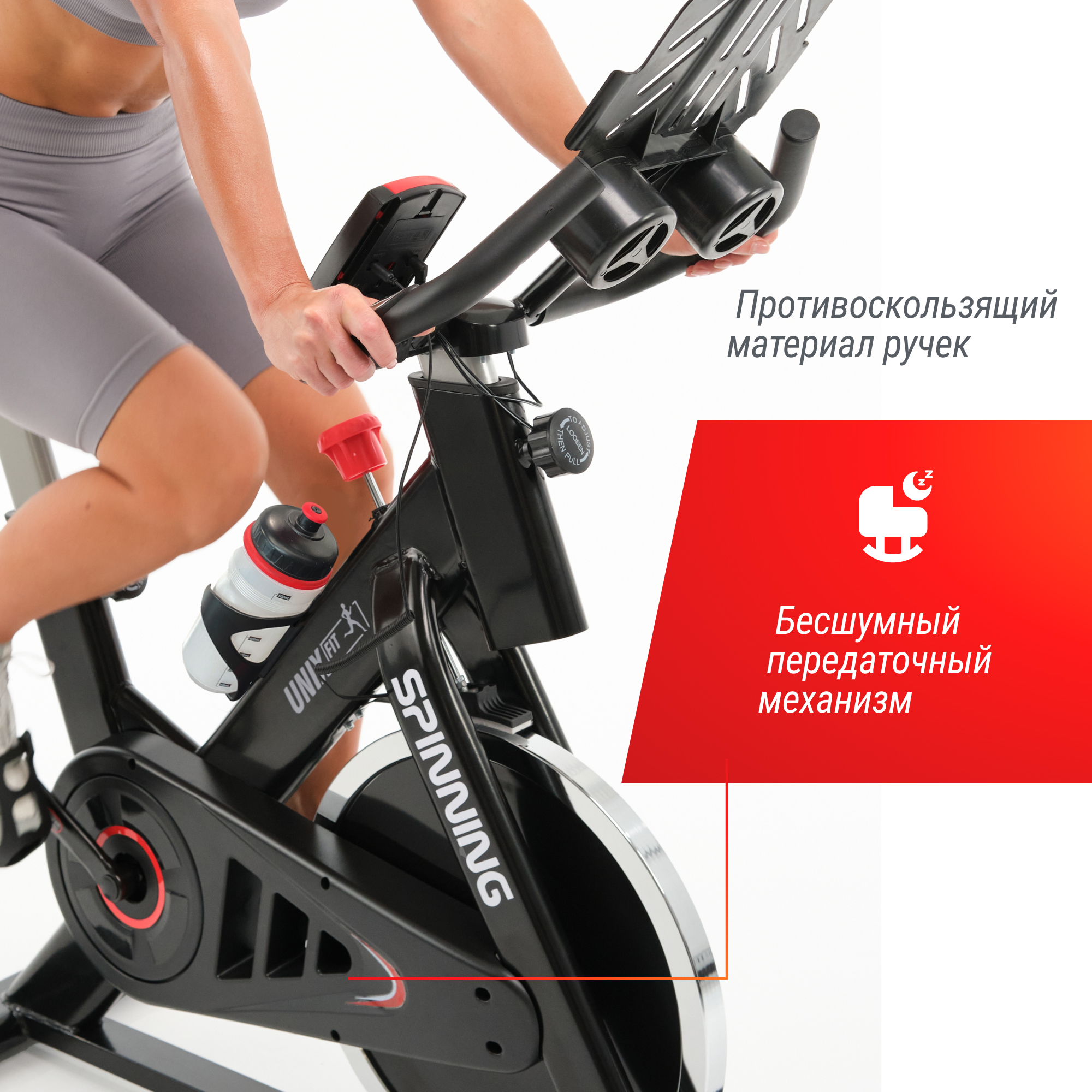 Колодочная система нагружения, тяжелый маховик 13 кг и бесступенчатая плавная система регулировки обеспечивают максимально плавный ход спинбайка. Предусмотрен экстренный тормоз.