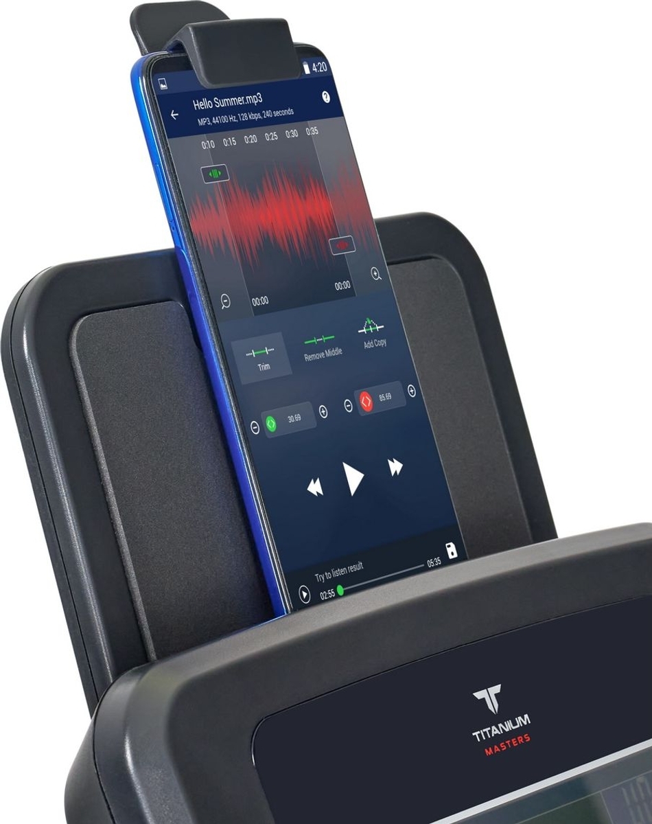 Тренировочный компьютер представлен многофункциональным цветным LCD-дисплеем диагональю 5.5 дюйма (14 см.) с удобными сенсорными клавишами управления. Консоль специально адаптирована под комфортное использование смартфона или планшета – девайсы можно расположить либо на центральной части консоли, либо сверху. С просмотром любимого сериала рутинная тренировка становится значительно бодрее. Не забыл производитель и о функции подзарядки – для этого есть предназначенный для этого USD выход, от которого можно запитать мобильное устройство.