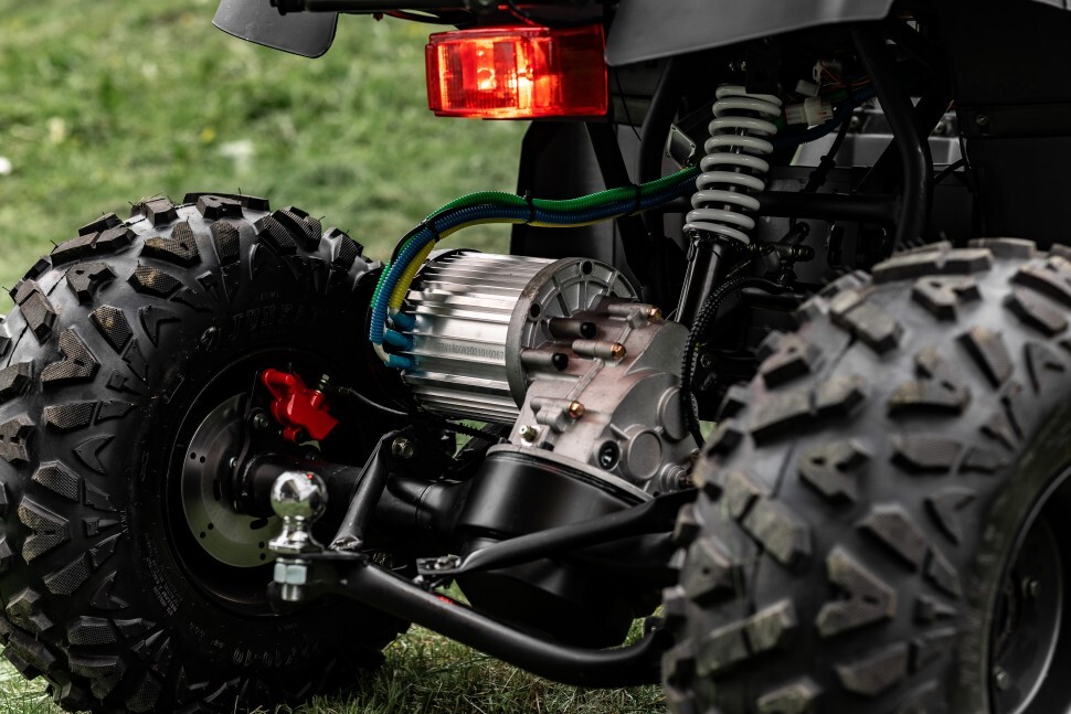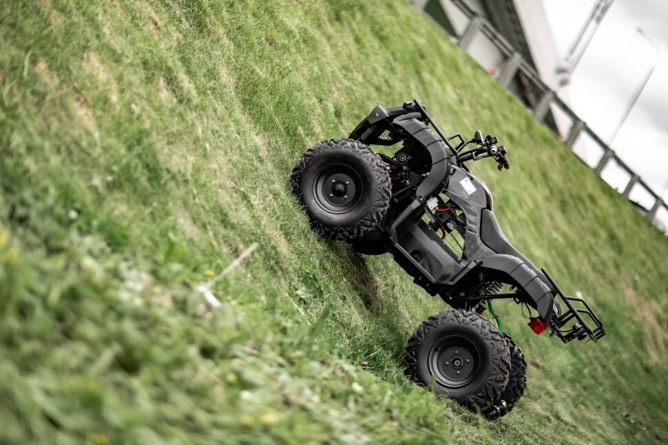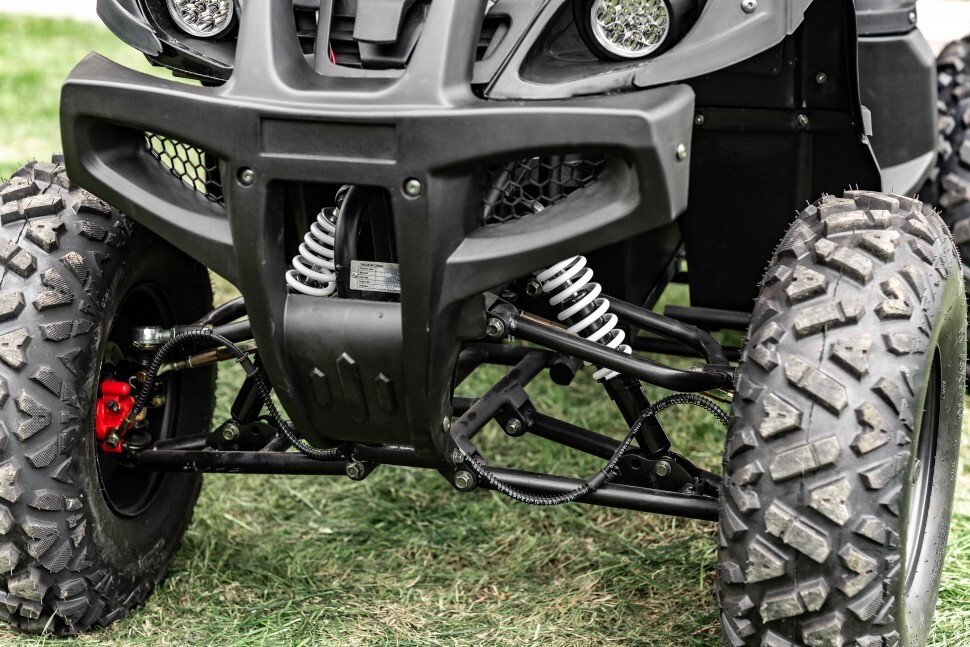 Самая большая колесная база среди среднеразмерных эл.квадроциклов : от передней оси до задней 1240 мм, расстояние между передними колёсами — 1120 мм, задними — 1240 мм. Большая площадь опоры дает хорошую устойчивость!