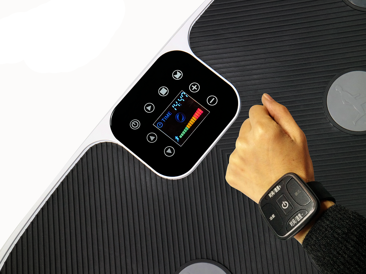Виброплатформа проста в использовании, к тому же вы сможете управлять её работой при помощи фитнес-браслета.