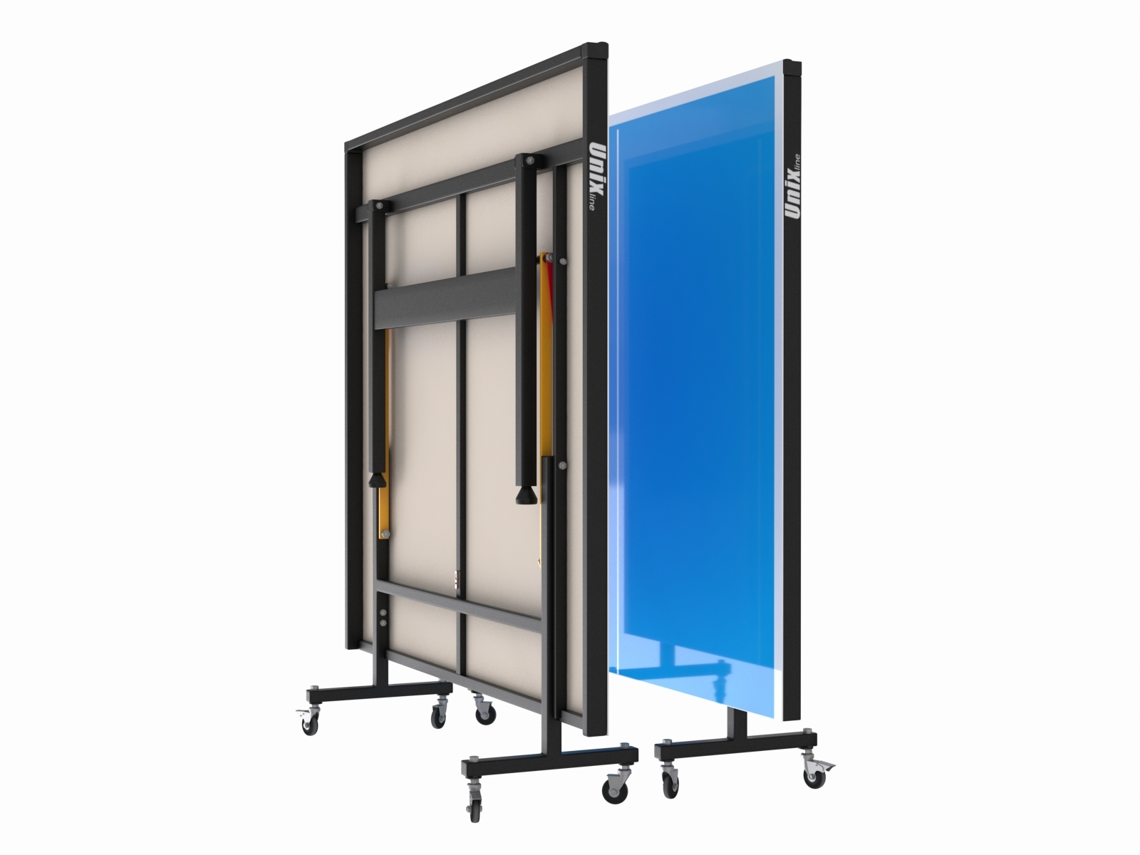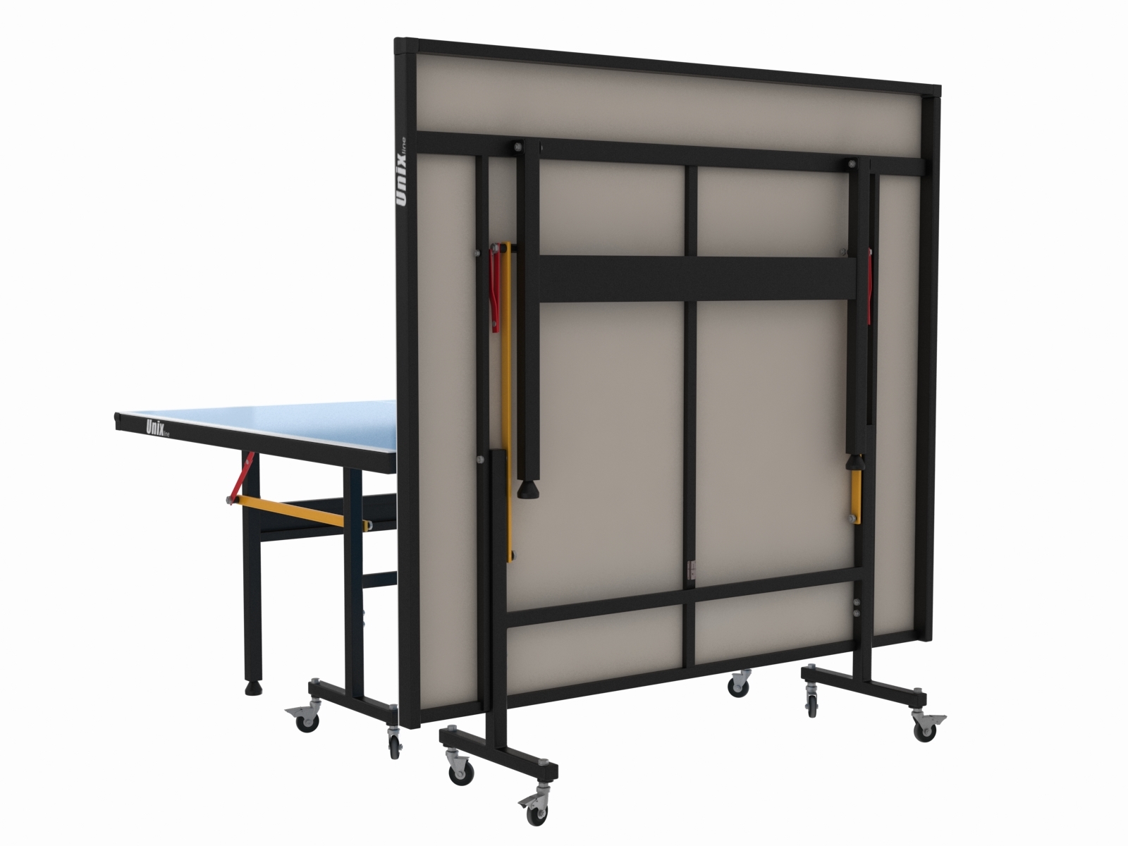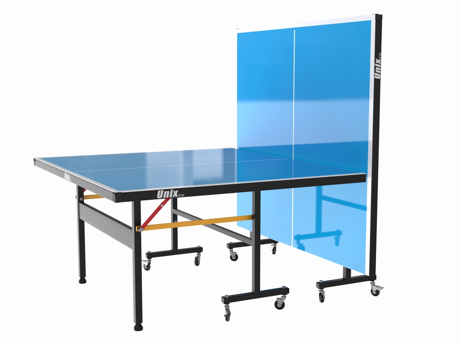 Металлическая рама теннисных столов UNIX line имеет толщину стали 1,7 мм, размер профиля опор составляет 30х30 мм. Благодаря таким характеристикам конструкции рамы, теннисный стол сохраняет жесткость и устойчивость на любых покрытиях. Опоры теннисного стола оборудованы компенсаторами неровности