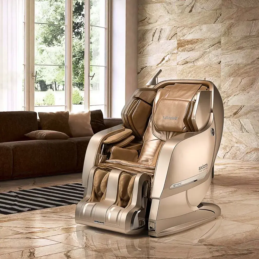 Массажное кресло Axiom Champagne от бренда YAMAGUCHI объединило в себе красоту формы и геометрических форм, а также высокое качество материалов, используемых при отделке корпуса.